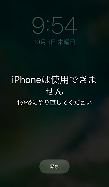 6回間違ったパスコードを入力すると、上記の画面が「5分後にやり直してください」と表示されます。