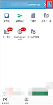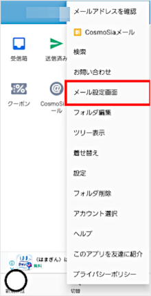 CosmoSiaアプリの「メール設定画面」メニューをタップして設定ができます。