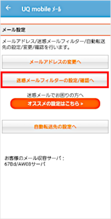 [迷惑メールフィルターの設定/確認へ]をタップします。