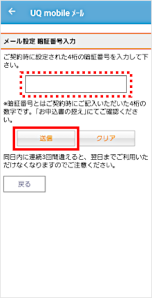 4桁の暗証番号を入力し、[送信]をタップします。