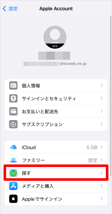 [iPhoneを探す]のスイッチをタップしてオフにします。