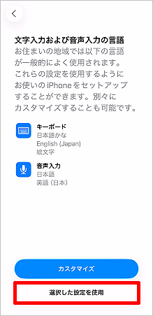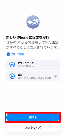 設定を移行する場合は[続ける]、新たに設定する場合は[カスタマイズ]をタップします。