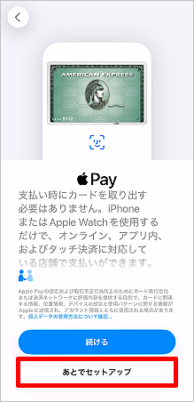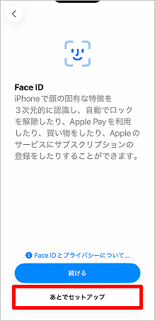 設定はいつでも行えるため、ここでは[あとでセットアップ]をタップします。