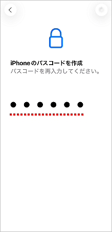 画面ロック解除などに使用するパスコードを、数字6桁で設定します。