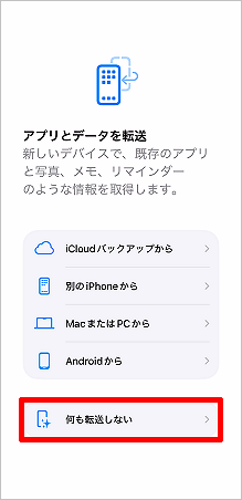 これ以降の手順は「何も転送しない」(新しいiPhone/iPadとして設定する)を選択した場合です。