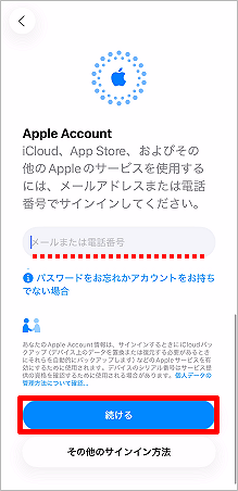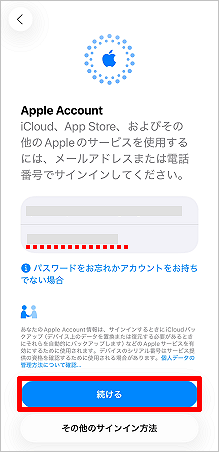 ※以降の画面遷移は、Apple Accountの設定状況によって異なります。