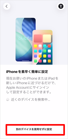 ここではほかにデバイスがない場合でご説明するため、[別のデバイスを使用せずに設定]をタップします。