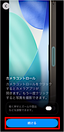 (iPhone 16シリーズ以降)カメラコントロールの説明画面が表示されます。