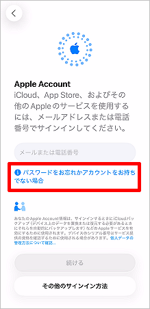 [パスワードをお忘れかアカウントをお持ちでない場合]をタップします。