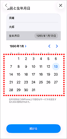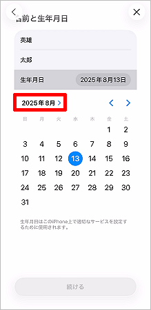 誕生月のカレンダー表示に切り替わるので、[誕生日]をタップします。