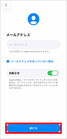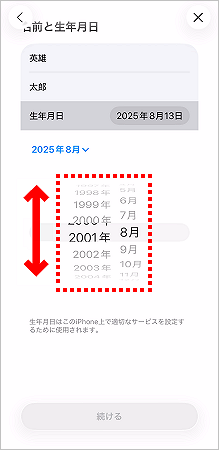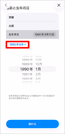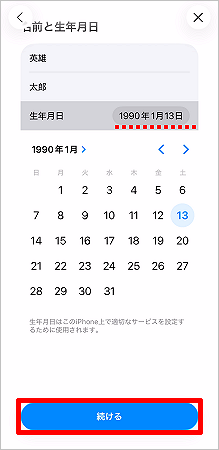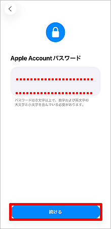 確認用とあわせて2回入力し、[続ける]をタップします。