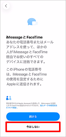 ※「あとで"設定"でセットアップ」をタップした場合は[使用しない]をタップし、手順㉚へ進みます。