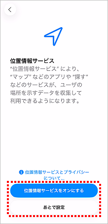 ここでは、[位置情報サービスをオンにする]をタップします。