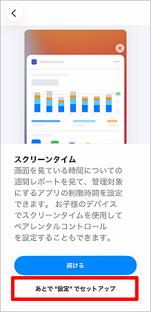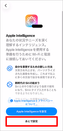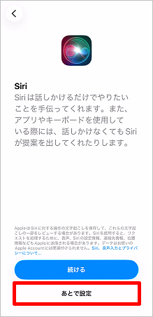 ここでは、[あとで”設定”でセットアップ]をタップします。