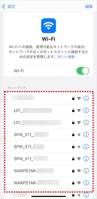 すでにWi-Fi設定されているネットワーク名(SSID)をタップします。