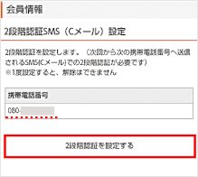 ※この画面ではなく、「2段階認証送信先」「2段階認証機器一覧」が表示された場合、2段階認証はすでに設定済みです。
