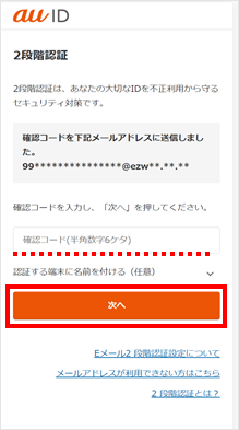 au IDを入力し、[次へ]をタップします。