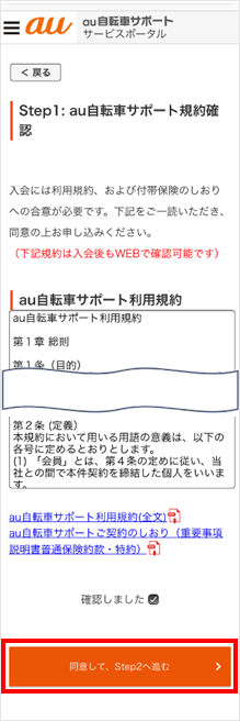 「au自転車サポート」にアクセスします。