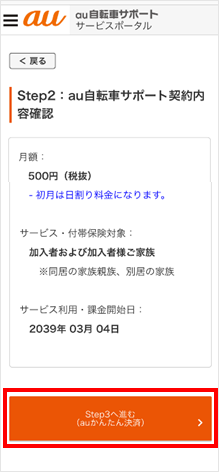 [Step3へ進む(auかんたん決済)]をタップします。