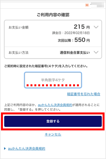 暗証番号を入力し、[登録する]をタップします。