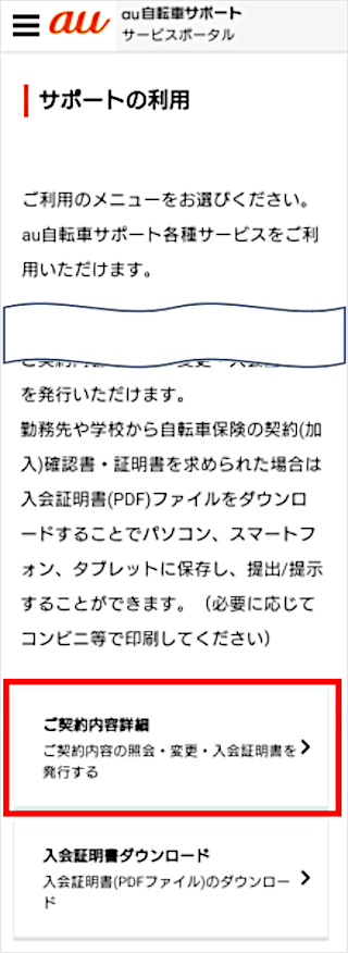 au自転車サポートにアクセスし、au IDでログインします。