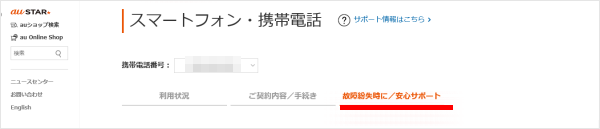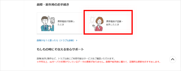 [故障紛失時に/安心サポート]をクリックします。