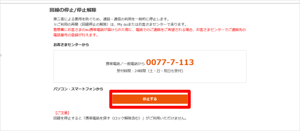 緊急通話停止はauおよびUQ mobileのケータイやスマートフォンの盗難・紛失などの際に、電話回線を一時的に止めることができます。