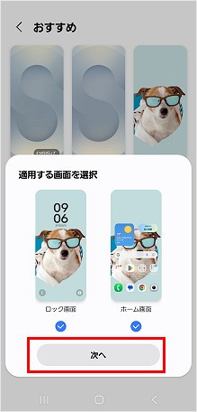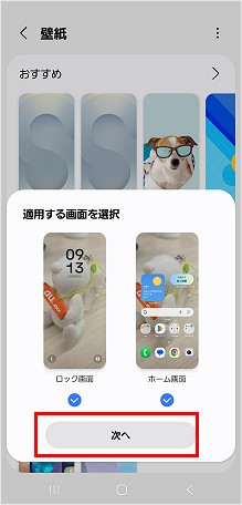 壁紙に設定する画面を選択し、[次へ]をタップします。