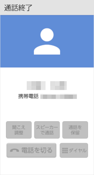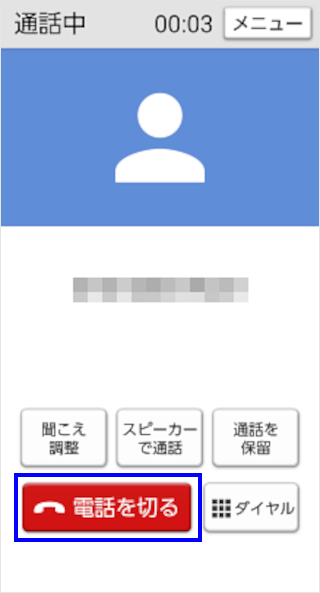 通話画面で[通話終了]をタップすると、電話を切ることができます。
