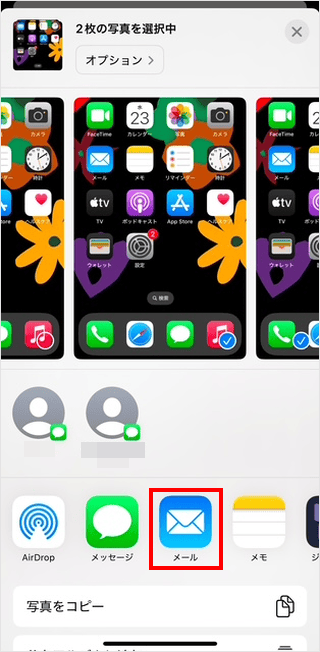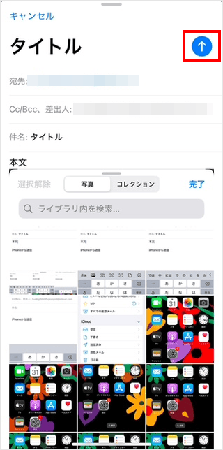 写真アプリから画像を添付してメールアプリで送ることができます。