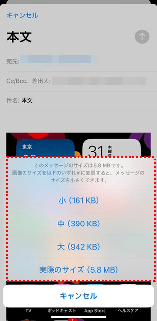 メールアプリから画像を添付してメールアプリで送ることができます。