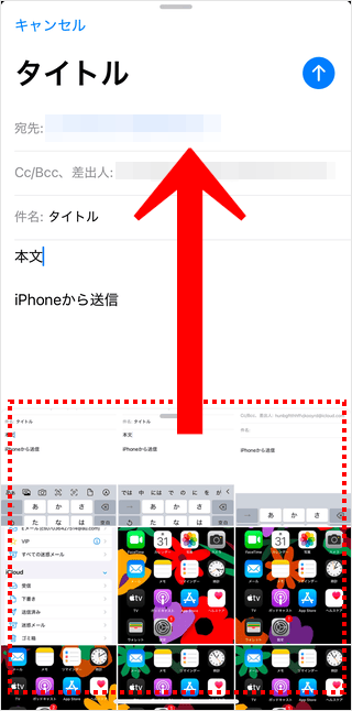 入力が完了したら、本文内にカーソルが表示されている状態で、[<]をタップします。