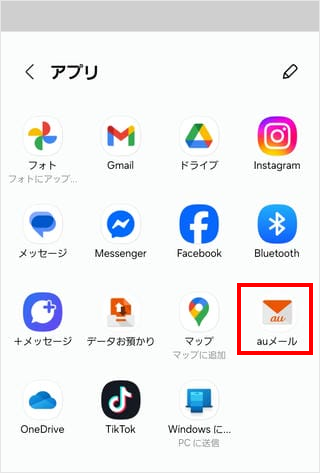 ※「auメールアプリ」が表示されていれば、[auメールアプリ]をタップします。