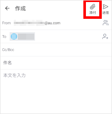 auメールアプリで画像を添付してメールを送ることができます。