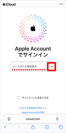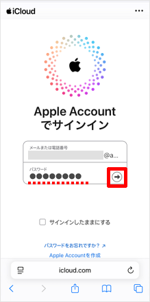Apple Accountを入力し、[→]をタップします。