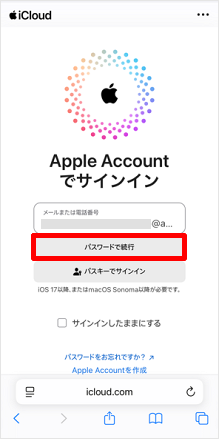 [パスワードで続行]をタップします。