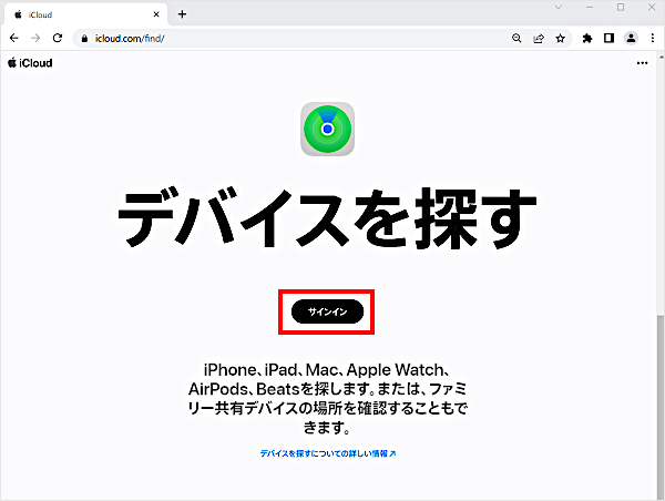 本手順では、「iCloud.com」で探す手順をご案内します。