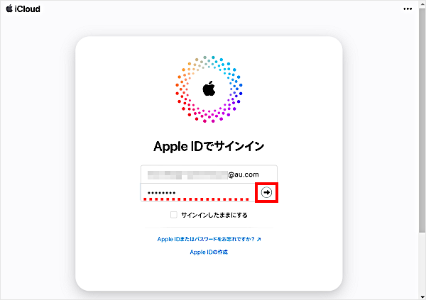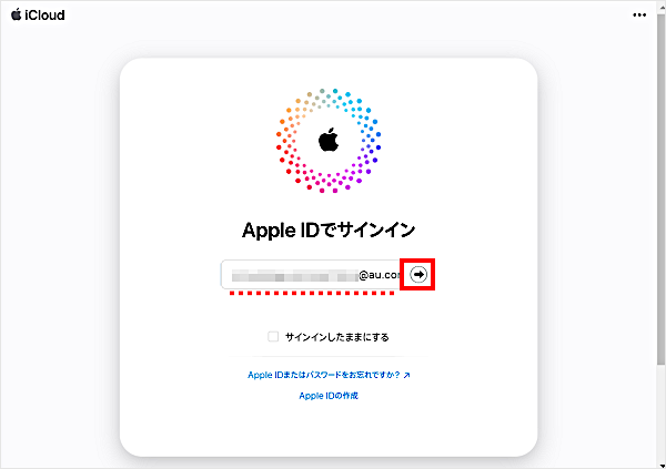 「Apple Account」を入力し、[→]をクリックします。