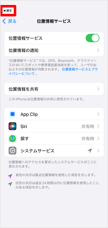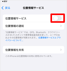 [位置情報サービス]のスイッチをタップし、オンにします。