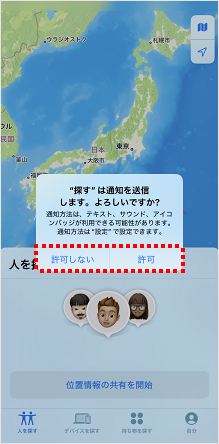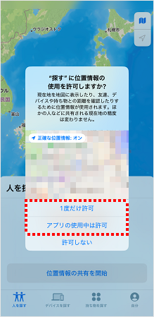 位置情報の使用を許可する画面が表示されます。