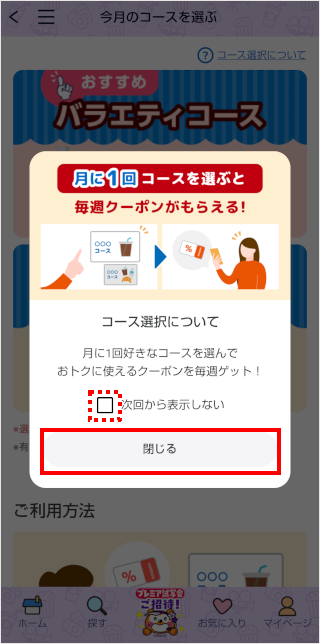 コースの選択/クーポンの取得/取得したクーポンの利用方法について、詳細は以下をご確認ください。