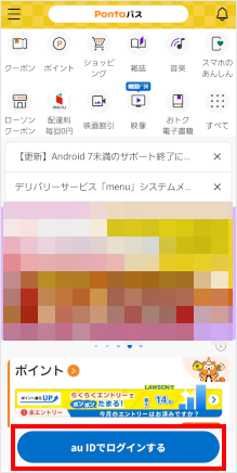 Pontaパス/Pontaパス ライトにご加入中にも関わらず、Pontaパスアプリのマイページで「Pontaパスに登録していません」と表示される場合、異なるau IDでログインしている可能性が考えられます。