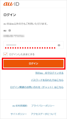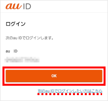 ※表示されているau IDと異なるau IDでログインする場合は、[別のau IDでログインしたい方はこちら]をタップします。