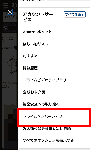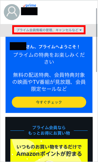 [プライム会員情報の管理、キャンセルなど]をタップします。