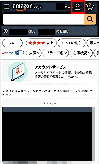au/UQ mobile/povo/他事業者のキャンペーン特典の適用状況は、Amazonプライムサイト内の「アカウントサービス」内でご確認いただけます。
