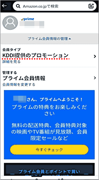 2025年6月以降に実施したau/UQ mobileの「Amazonプライムついてくるキャンペーン」の適用状況は、Amazonプライムサイト内の「アカウントサービス」内でご確認いただけます。