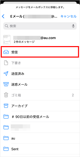 メールを戻す先のフォルダをタップします。