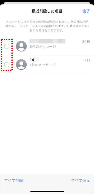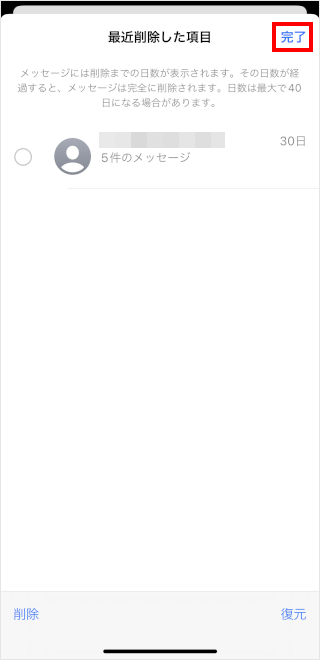 [●件のメッセージを復元]をタップします。