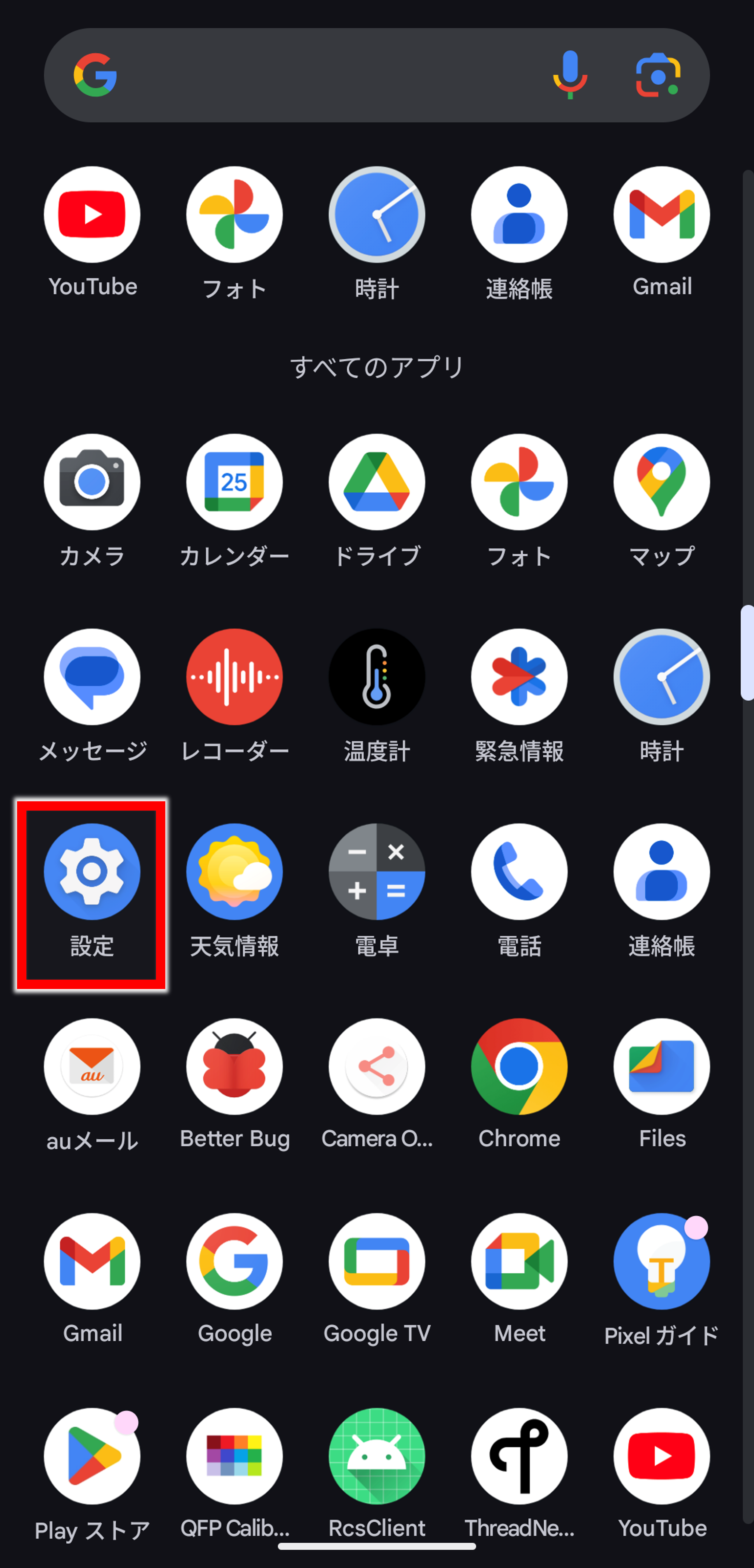 ホーム画面まはたアプリ一覧より「設定」を選択