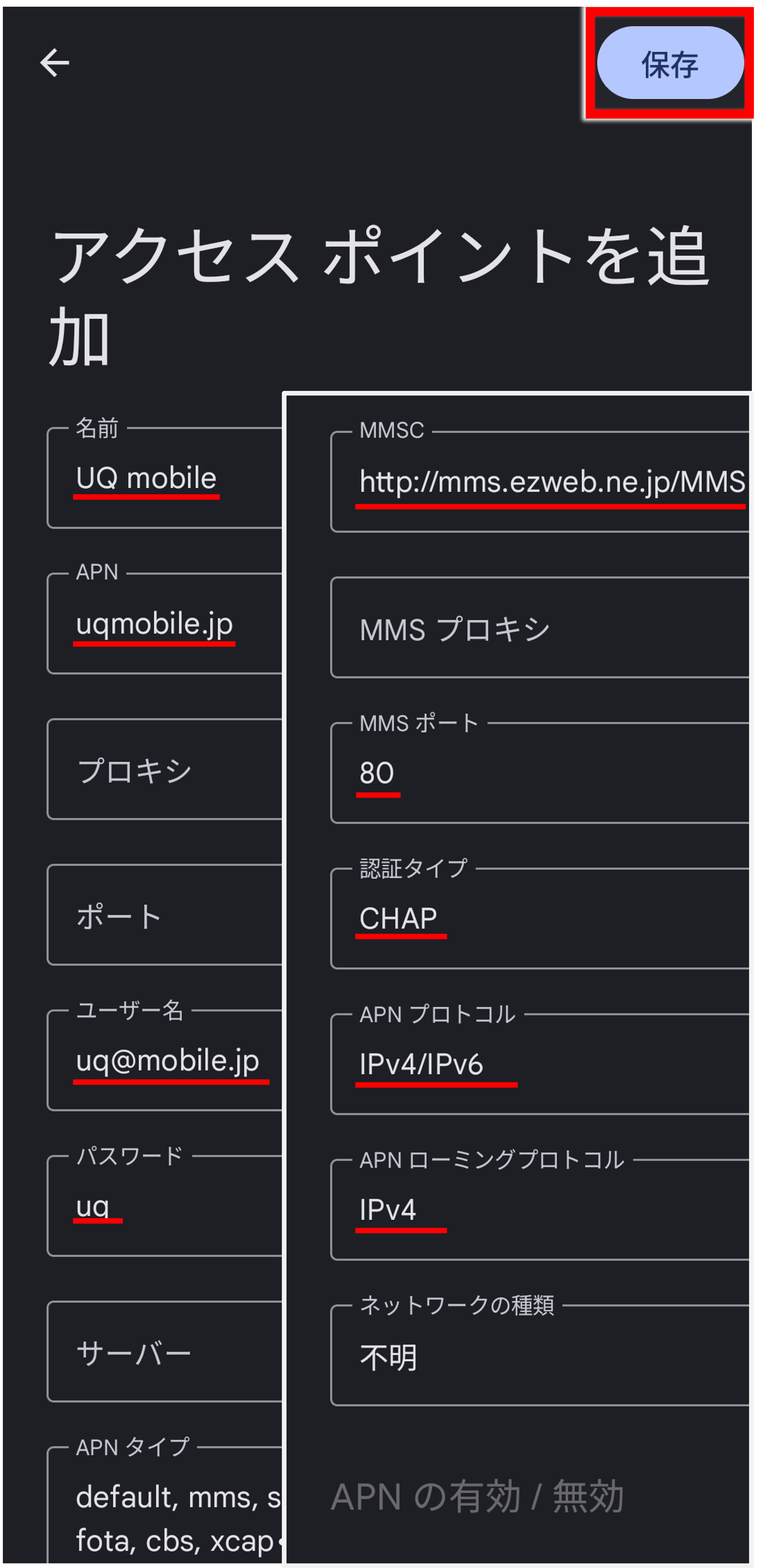 UQ mobileの製品以外でメールサービスをご利用される場合、MMSC、MMSポートの設定が必要になります。